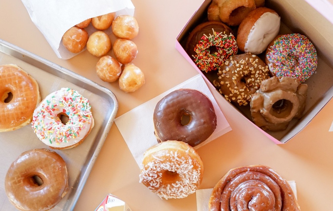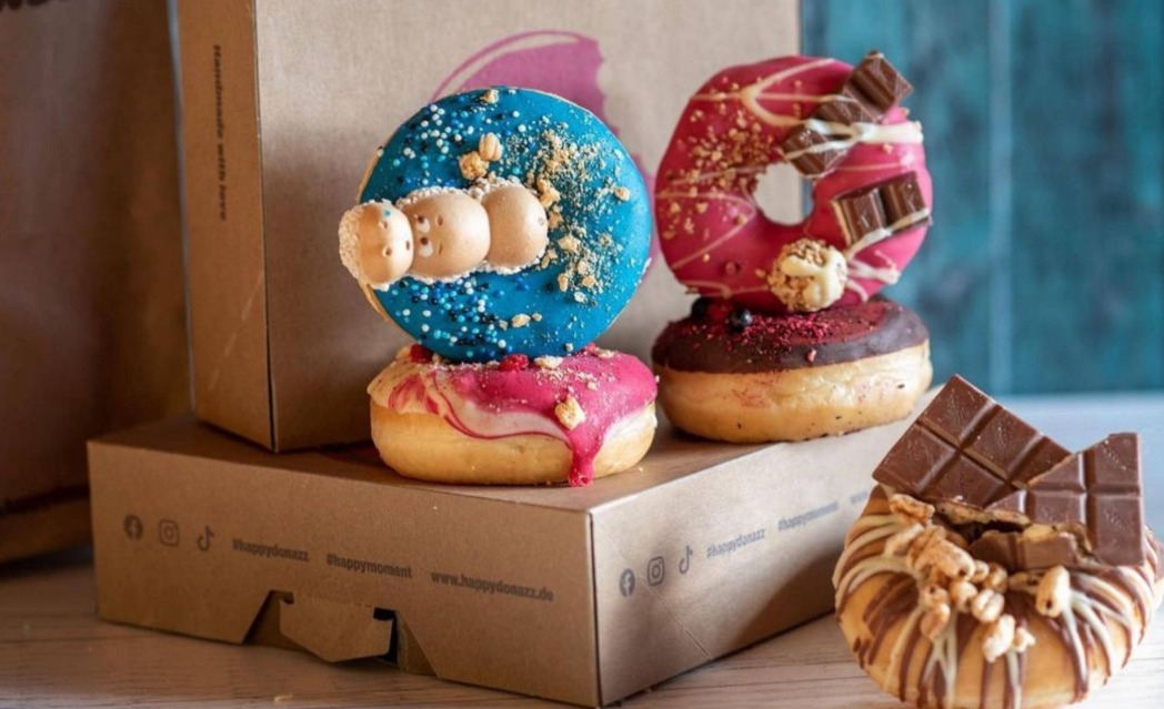 Happy Donuts 的甜甜圈是那种出锅就能闻到香气的类型,外层松软、内部略带湿润,不需要等太久就能咬下去。口味排列丰富,从经典糖霜到夹心款都有,选择性大、组合自由。甜度控制得体,既有能让人回味的小确幸,也不会一口下去就觉得太重!