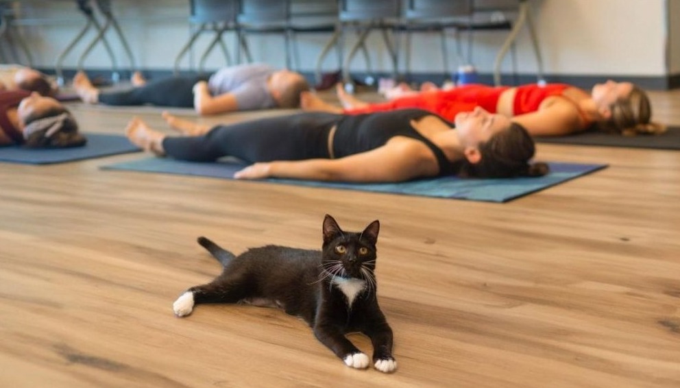 这堂课不像传统瑜伽那样一板一眼,猫咪的存在本身就让氛围轻松很多。课程以基本拉伸和柔和动作为主,但猫咪会随时加入互动,它们绕着垫子走、靠近你、甚至轻轻蹭腿,这些随机性让整个过程不像课更像一次愉快的中场休息。猫咪的好奇和安静都有趣,让身体放松的同时心情也慢慢轻松下来!