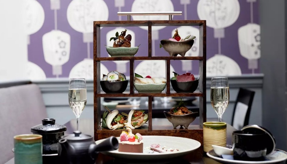 Robun双人下午茶£37,抹茶甜点和咸点组合很有新鲜感!