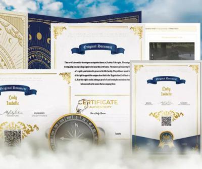 专属的“勋爵”或“夫人”贵族头衔证书,带有签发日期、签名与印章。