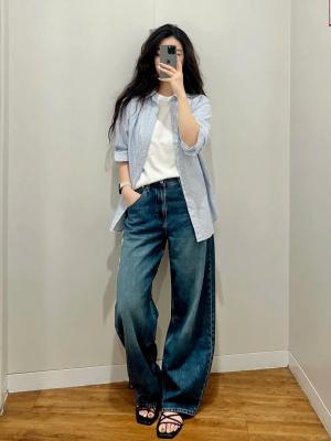 是宽松但不会显胯宽的版型!搭配格子衬衫叠穿一下 很斯文的知识分子女孩出现📖