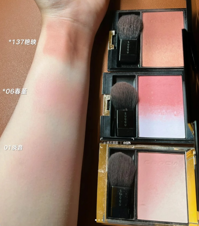 右下色也很适合画下至 腮红用的右上叠加左下