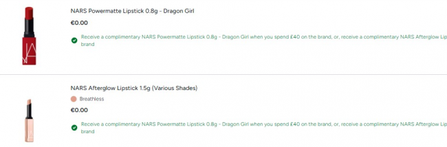 🎁 购买Nars满£40,即可获赠1支迷你NARS Powermatte唇膏!满£60加赠1只迷你粉金唇膏!