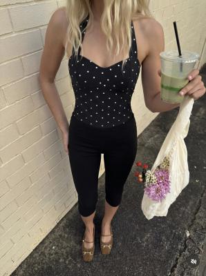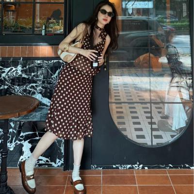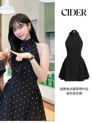 复古波点设计,露背与荷叶边细节,夏日吸睛必备。