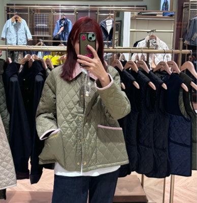 Barbour 经典短款绗缝夹克,橄榄绿色百搭耐看,英伦风十足。
